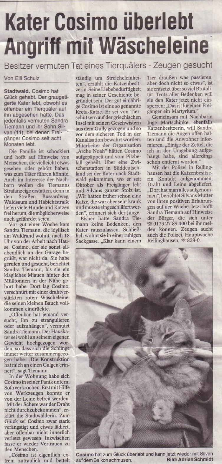 Zeitungsartikel in der WAZ vom 23.05.2003: